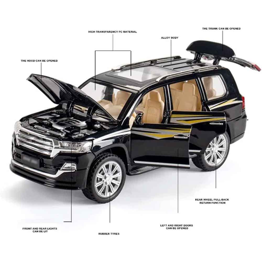با ماکت تویوتا لندکروز V8 دودزا بزرگ 1/24 چراغدار و موزیکال، تجربهای واقعی از قدرت و جذابیت را به مجموعهی خود اضافه کنید! این ماکت با جزئیاتی دقیق، چراغهای روشن و صدای هیجانانگیز، همگان را مجذوب خود میکند. انتخابی بینظیر برای کلکسیونرها و دوستداران خودروهای خاص! ✨🚗