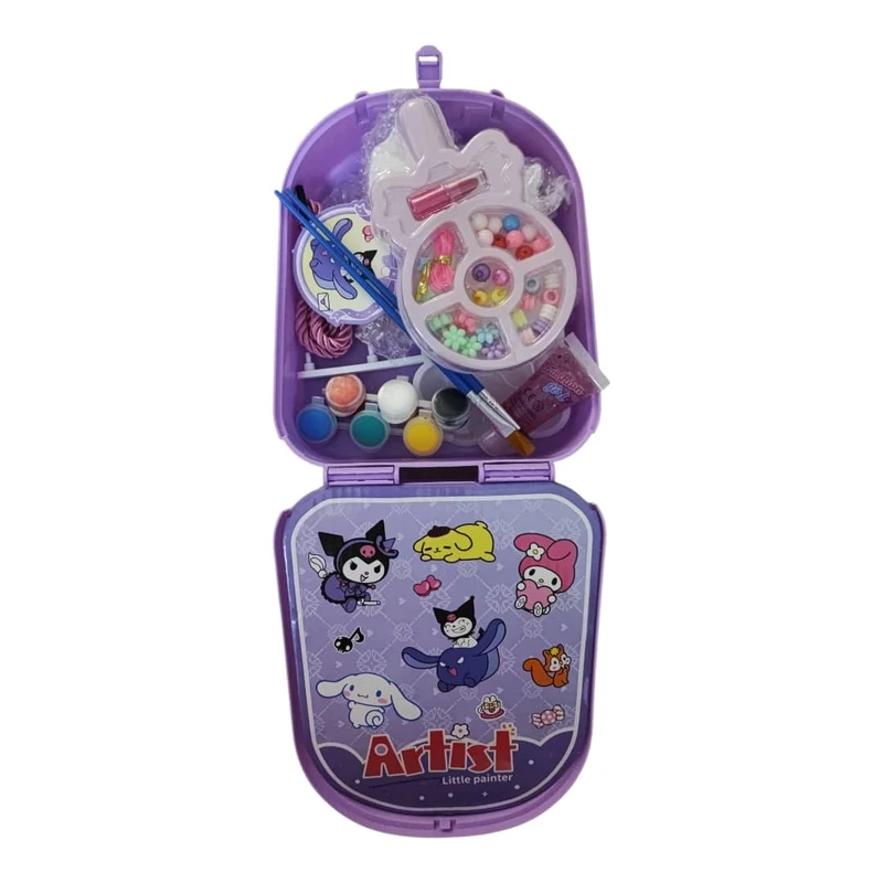بچهها میتونن با مهرهها دستبندهای رنگی بسازن، با آبرنگ نقاشیهای قشنگ بکشن، با قلمو خلاقیتشون رو شکوفا کنن. همهی وسایل داخل یک جعبهی کیفشو قرار میگیرن که بچهها میتونن ابزارشون رو مرتب نگه دارن یا با خودشون به مهمونیها و سفرها ببرن.