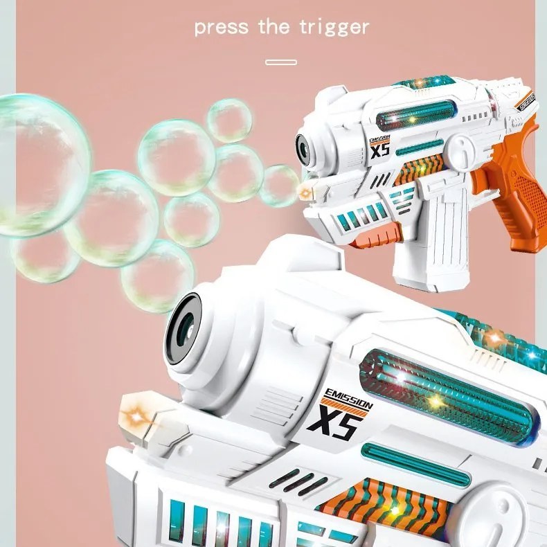 شامل یک تفنگ و دو بطری مایع حباب ساز بوده
