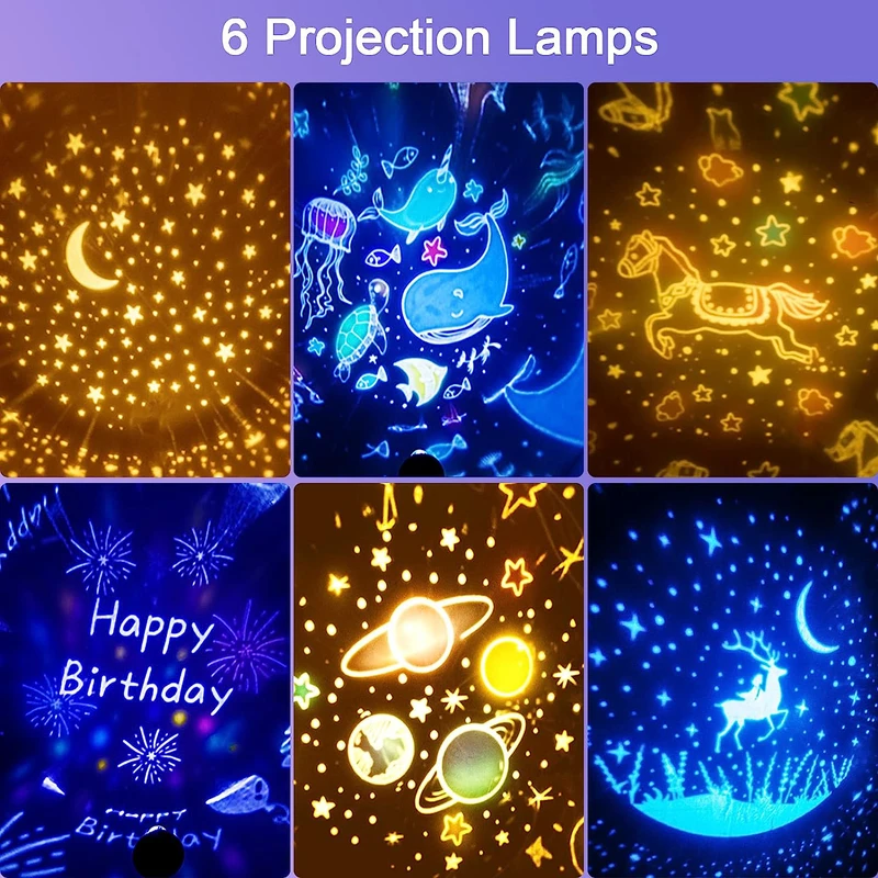 دارای 6نوار تصویری میباشد که میتوانید درون چراغ بگذارید و جایگزین یکدیگر نمایید