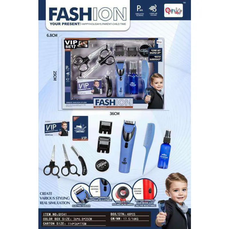 این ست شامل 2 عدد قیچی، اسپری آب, شانه، موزر، تیغ اصلاح، ژیلت، سری موزر و ... می باشد.