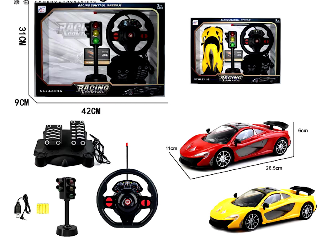 اسباب بازی ماشین کنترل شارژی با پدال گاز و چراغ راهنمایی