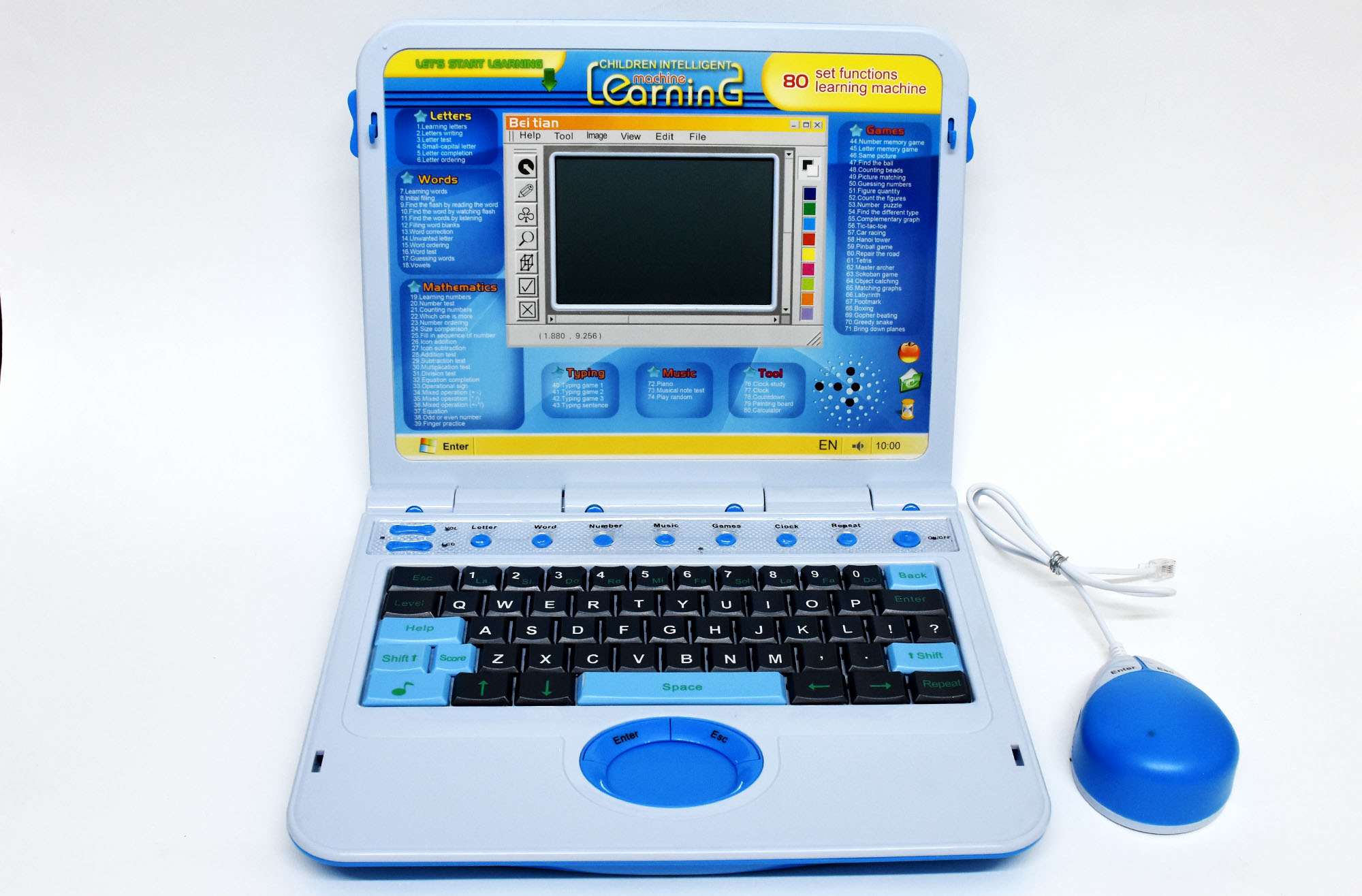 لپ تاپ آموزشی هشتاد کاره یک وسیله ی کمک آموزشی مناسب برای کودکان می باشد. در این لپ تاپ ۸۰ برنامه ی کاربردی هدفمند طراحی شده است که کودک ضمن یادگیری و بازی با برنامه ها با کلید ها و فضای یک لپ تاپ واقعی نیز آشنا می شود. این لپ تاپ تماما انگلیسی بوده و اصلا زبان فارسی در آن استفاده نشده است. تصاویر روی صفحه ی نمایش نیز بصورت سیاه - سفید می باشد. صدای لپ تاپ با دکمه vol کم و زیاد شده و نور صفحه نیز توسط کلید LCD قابل تنظیم می باشد. موس از طریق سیم به لپ تاپ متصل شده و روی آن دو کلیدEnter و Esc قرار دارد که می توان از آنها استفاده کرد. برای باز کردن لپ تاپ دو کلید کناری را به جلو بکشید تا لپ تاپ باز شود و نیاز به 3 باطری 1.5v دارد.