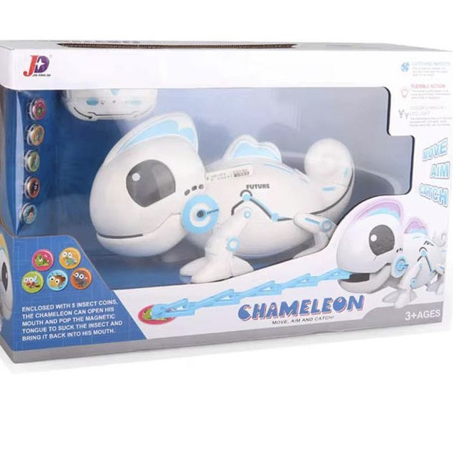 همیشه ربات های اسباب بازی بین بچه ها جایگاه ویژه ای داشته و داره! زمانی که شما این اسباب بازی را روشن می کنید، ربات بوسیله ریموت کنترل قابل حرکت هست و می تونید با استفاده از کنترل زبان آفتاب پرست را به بیرون بیاورید و از بازی با این حیوان بامزه لذت ببرید.این ربات اسباب بازی از جنس پلاستیک بسیار مرغوبی تولید شده است و فاقد هرگونه مواد شیمیایی و رنگ های سمی می باشد و حفظ سلامتی کودک را در هنگام بازی به طور کامل تضمین می کند.