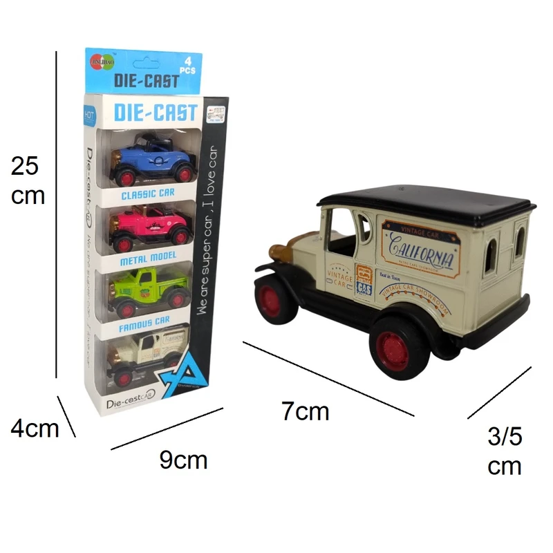 با پک ۴تایی ماشین کلاسیک فلزی، به دنیای نوستالژی سفر کنید! این مجموعه با جزئیات دقیق و طراحی اصیل، هر کلکسیونری را مجذوب خود میکند. هدیهای بینظیر برای علاقهمندان به خودروهای کلاسیک که به دکوراسیون شما جلوهای خاص میبخشد. هماکنون خرید کنید و لذت ببرید!