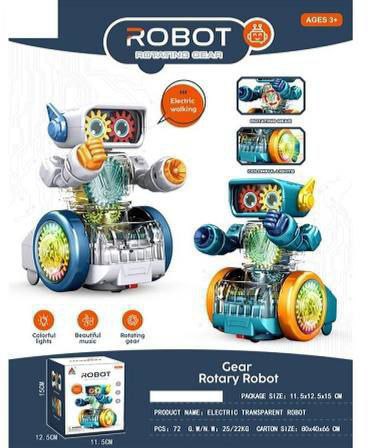 قسمت جلویی یا بدن ربات دارای چرخدندههای رنگارنگ است که هنگام روشن شدن، میچرخند و توجه کودک را به خود جلب میکنند.