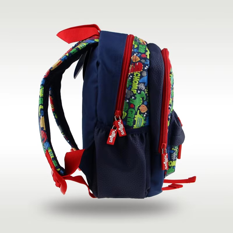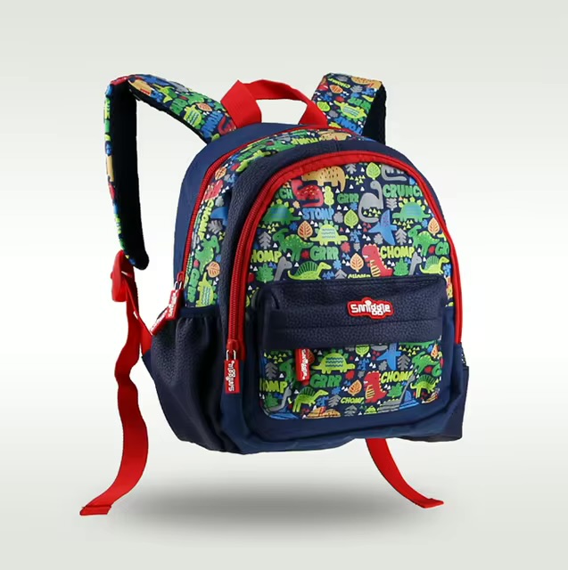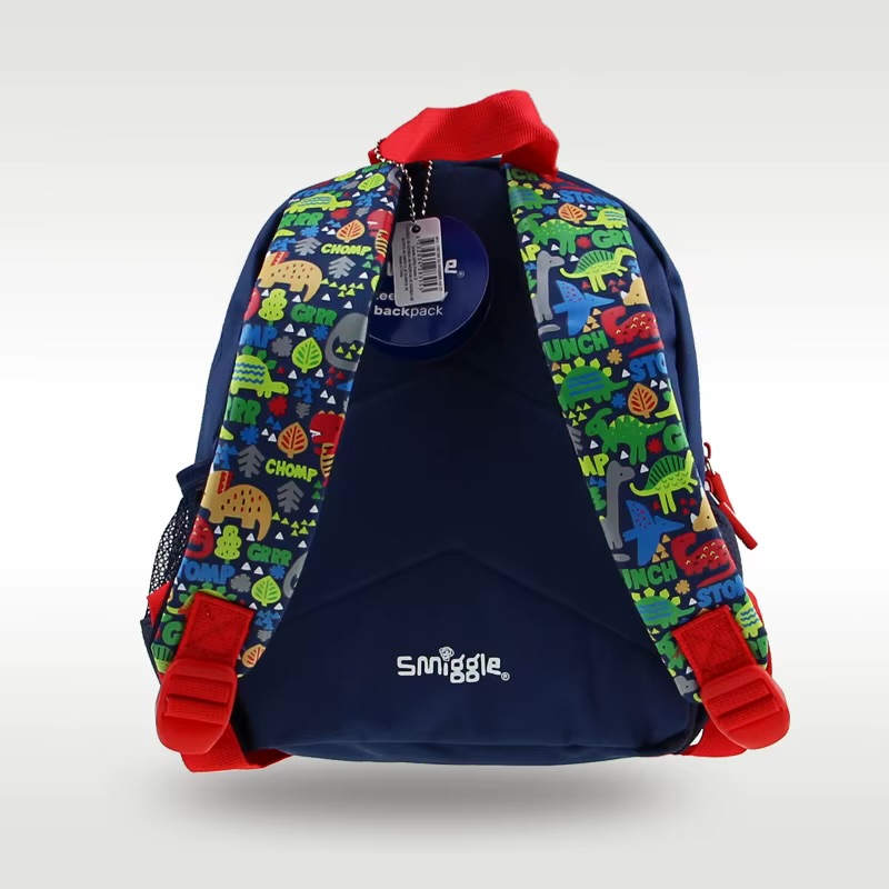 کوله پشتی مهدکودک از برند اسمیگل با طرح دایناسور یک کوله پشتی زیبا و جادار مناسب دوران مهدکودک است. این کوله پشتی با طرح های دایناسورهای کوچک و بامزه، محبوب پسر بچه های گروه سنی 1 تا 5 سال است. این کوله پشتی دارای یک دستگیره، بند سر شانه اسفنجی نرم و مشبک با قابلیت تنظیم ارتفاع، 1 زیپ بزرگ و کاربردی، 1 زیپ متوسط و 1 زیپ کوچکتر اما جادار است؛ همچنین دارای 2 جای قمقمه توری و از جنس کوله پشتی در دو طرف است.