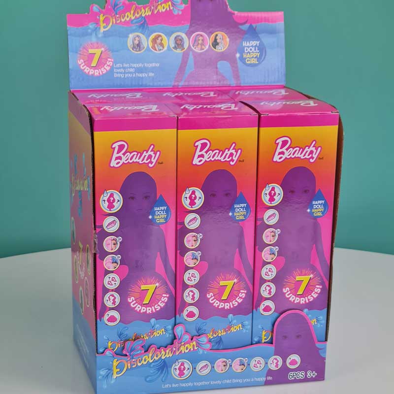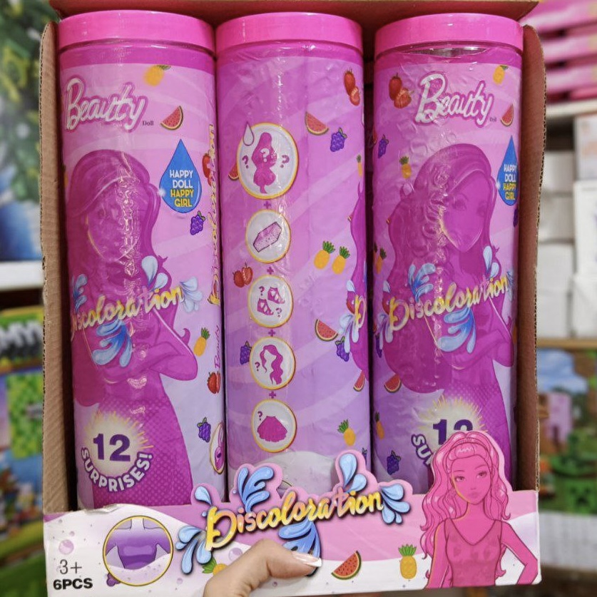 باربی سوپرایز یه اسباب بازی جذاب برای دختر خانم های گلمون هست و خیلی پر طرفداره. این محصول یه عروسک باربی رنگ شده است که وقتی تو آب گرم قرارش میدی و بعد از چند دقیقه درش میاری رنگ رویه اش میره و رنگ جذاب اصلیش خودش رو نشون میده. همراه این محصول کلی چیز میز مثل کلاه گیس، کفش، دامن و پد آرایشش هست که بسته به نوع سلیقه تون میتونید ازش استفاده کنید.
